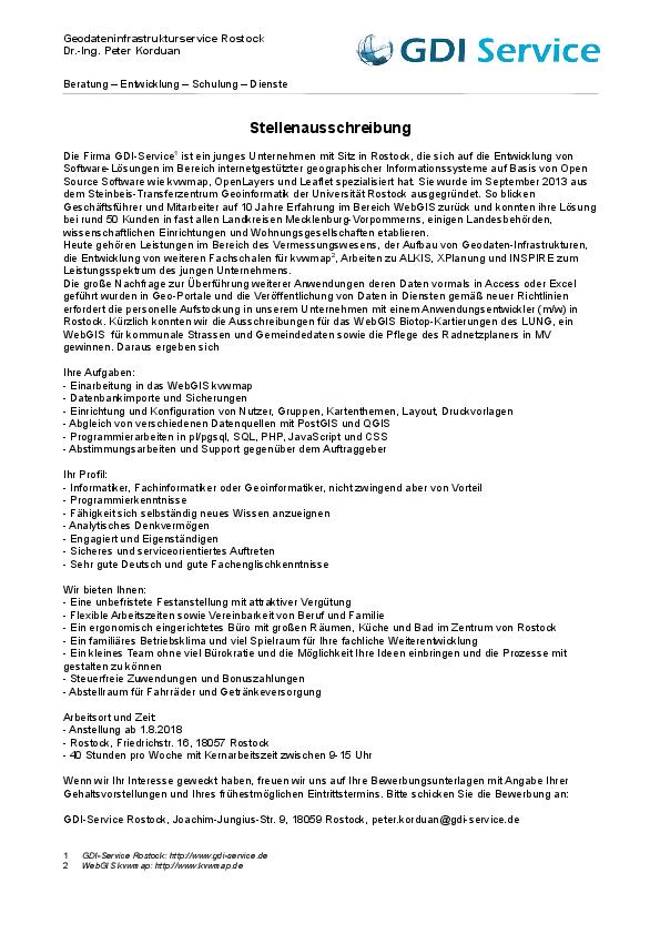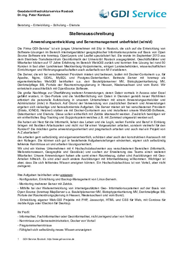 Wir Suchen zur Erweiterung unseres Teams einen weiteren Mitarbeiter.Sie haben Kenntnisse im Bereich Linux-Server, Datenbankverwaltung und Web-Anwendungsentwicklung? Sie arbeiten gern selbständig, in einem kleinen Team und sind neugierig auf neue spannende Aufgaben? Dann schauen Sie sich mal unsere Ausschreibung an.