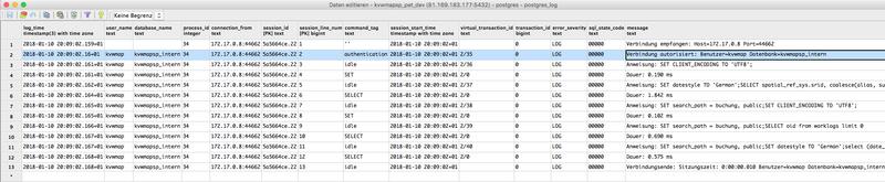 Der Blog-Post Postgres log_statement='all' should be your default von Greg Sabino Mullane hat mich ermutigt unsere Logging-Strategie für die von uns genutzten und betreuten Datenbanken zu überdenken. Es ist besser damit zu starten alles zu loggen und dann je nach Bedarf anzupassen als umgekehrt. In Kombination mit der Postgres-Dokumentation Abschnitt 18.8.4 kann ich folgende Einstellungen empfehlen: log_statement = 'all' log_destination = 'csvlog' logging_collector = on log_directory = '/var/www/logs/pgsql' log_filename = 'pgsql-%Y-%m-%d.log' log_file_mode = 0644 log_truncate_on_rotation = on log_rotation_age = 1d log_rotation_size = 0 log_connections = on log_disconnections = on log_duration = on log_hostname = on log_timezone = 'UTC'
